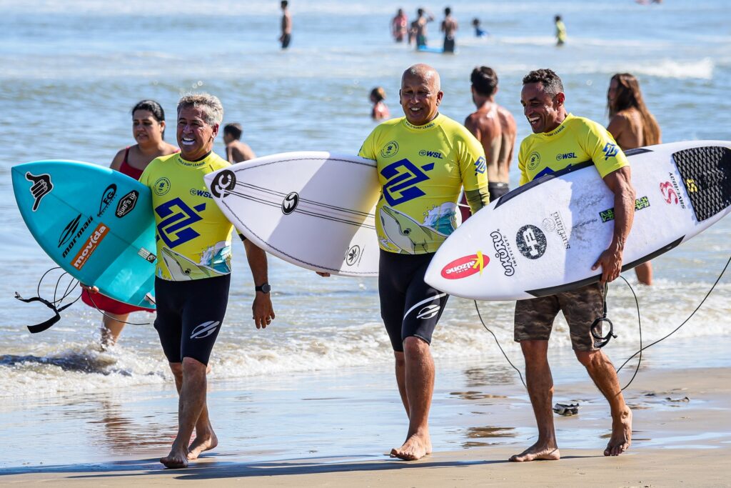 A bateria Legends SC foi realizada após o encerramento das quartas de final do masculino, reunindo grandes nomes do surfe brasileiro na Praia da Vila.
